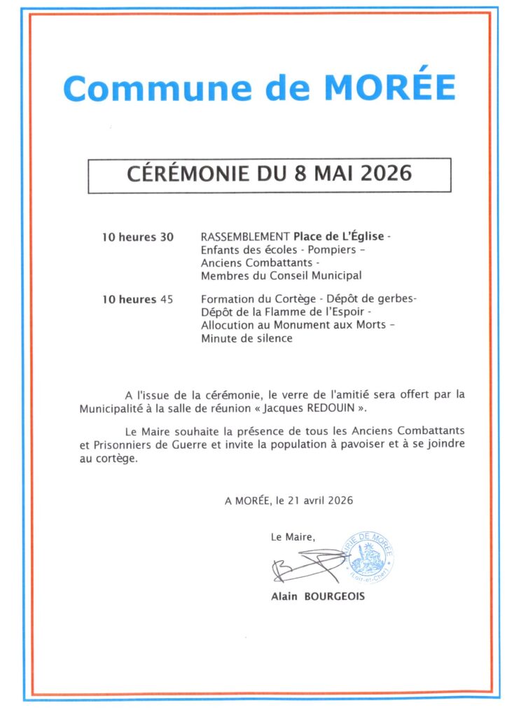 Je vous souhaite une agréable visite virtuelle sur le site internet de la commune de MORÉE.